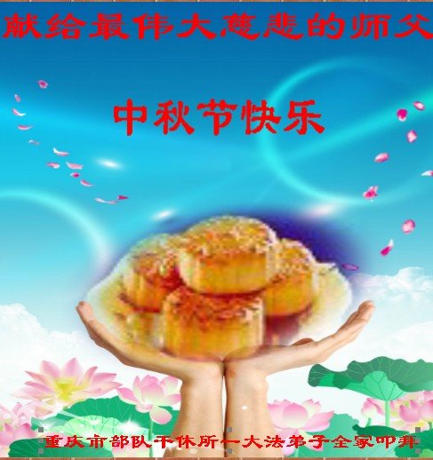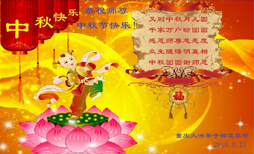 弟子们想念师父!感恩师父的洪大慈悲!弟子唯有做好三件事,让师父多一些欣慰,少一些操劳。 重庆沙坪坝土塆街道大法弟子和全家人恭祝师父中秋快乐!