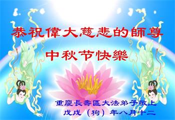 【明慧网二零一八年九月二十三日】 重庆北碚大法弟子恭祝师尊中秋节快乐!