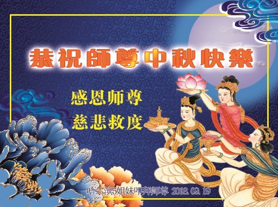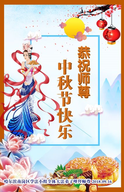 【明慧网二零一八年九月二十三日】 黑龙江省哈尔滨市五常市拉林镇一大法弟子恭祝师尊中秋佳节快乐!
