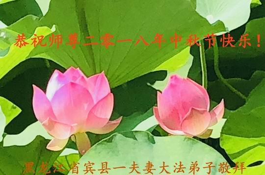 黑龙江省哈尔滨市宾县一夫妻大法弟子恭祝师尊中秋节快乐!
