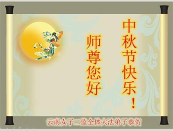 【明慧网二零一八年九月二十三日】 被非法关押在云南女子二监的全体大法弟子恭祝慈悲伟大的师尊中秋节快乐!