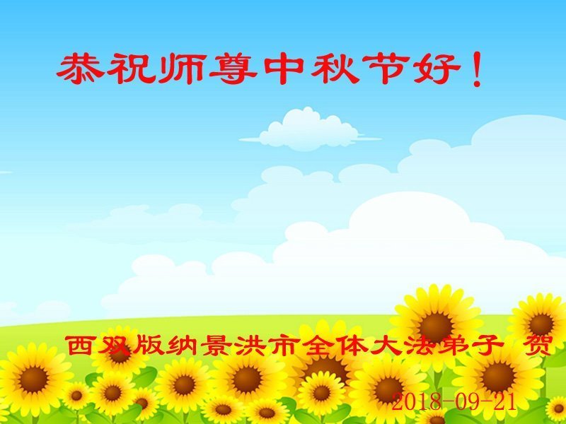 中秋佳节到来之际,我们想念师尊!弟子一定精進实修,多救人。 云南省西双版纳州勐海县大法弟子恭祝师尊中秋快乐!