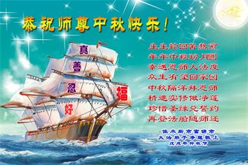 生生轮回苦无边, 年年中秋盼月圆。 幸遇恩师大法度, 众生有望回家园。 中秋隔洋拜恩师, 精進实修做净莲。 珍惜圣缘兑誓约, 再登法船随师还。 佳木斯市富锦市大法弟子净莲 黑龙江佳木斯市富锦市站前学法小组恭祝师尊中秋快乐!