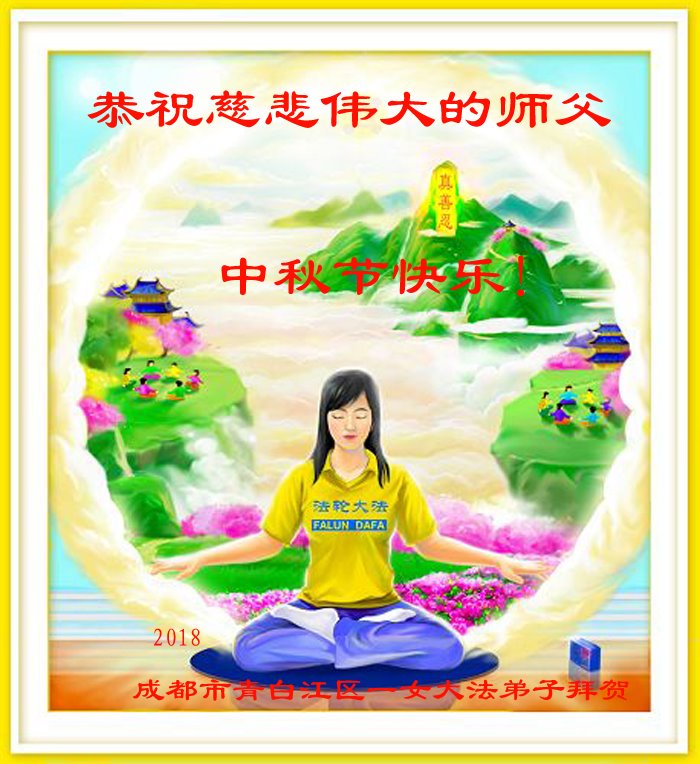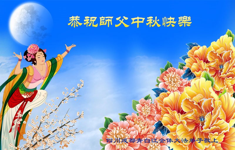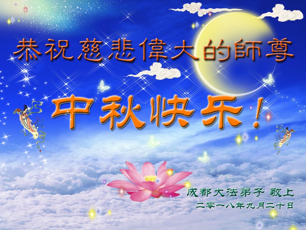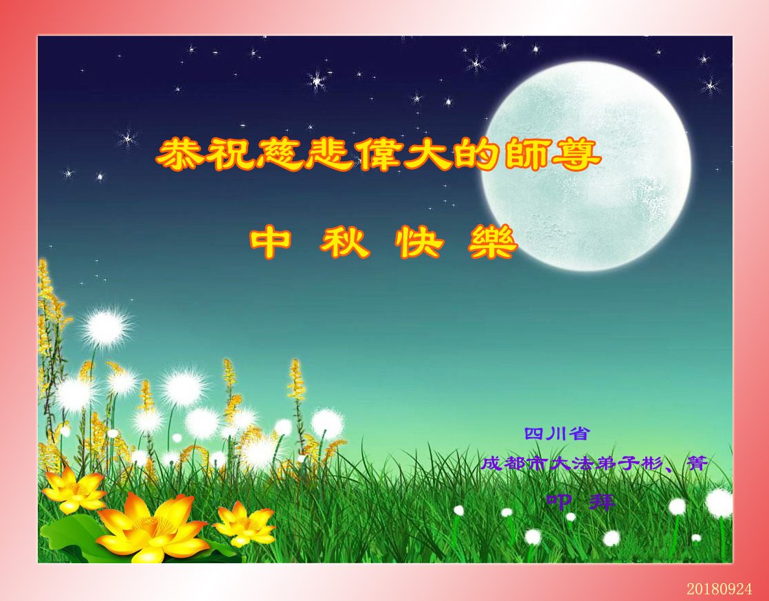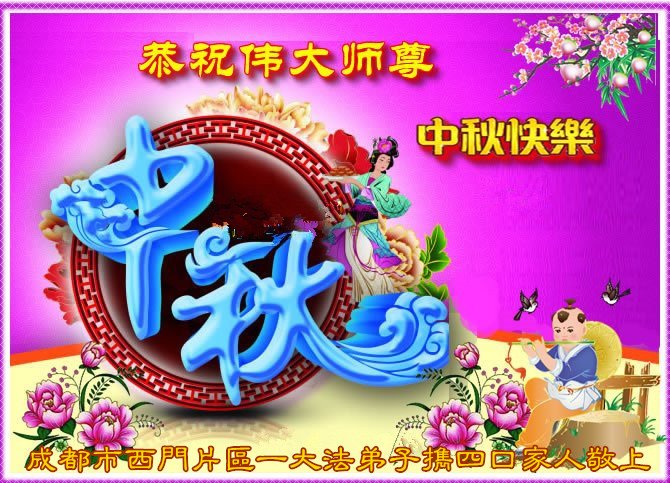四川省成都大法弟子恭祝慈悲伟大的师尊中秋节快乐!
