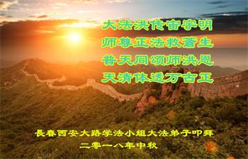 【明慧网二零一八年九月二十三日】 吉林省长春市九台市区一学法小组大法弟子恭祝师尊中秋快乐!