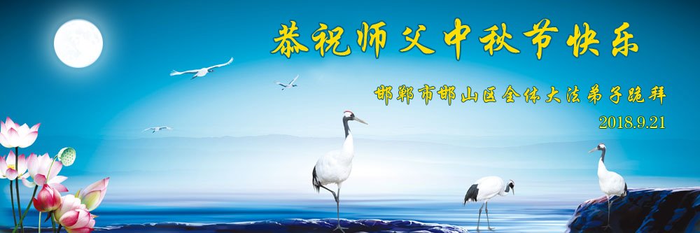 在这有限的时间里,我们牢记师父的教诲,向内找、修自己,排除一切干扰,坚定的信师信法,做好三件事,多学法、多救人,不辜负师父的慈悲苦度。 河北省邯郸市峰峰矿区峰峰镇夫妻二人大法弟子祝师父中秋快乐!