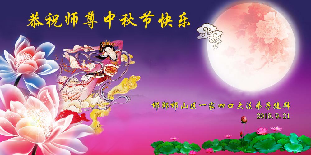 大法弟子想念师尊,盼师尊早日回中国大陆。弟子一定精進实修,做好三件事。弟子全家人恭祝师尊中秋节快乐! 河北邯郸曲周县大法弟子及全家人祝师尊中秋节快乐!
