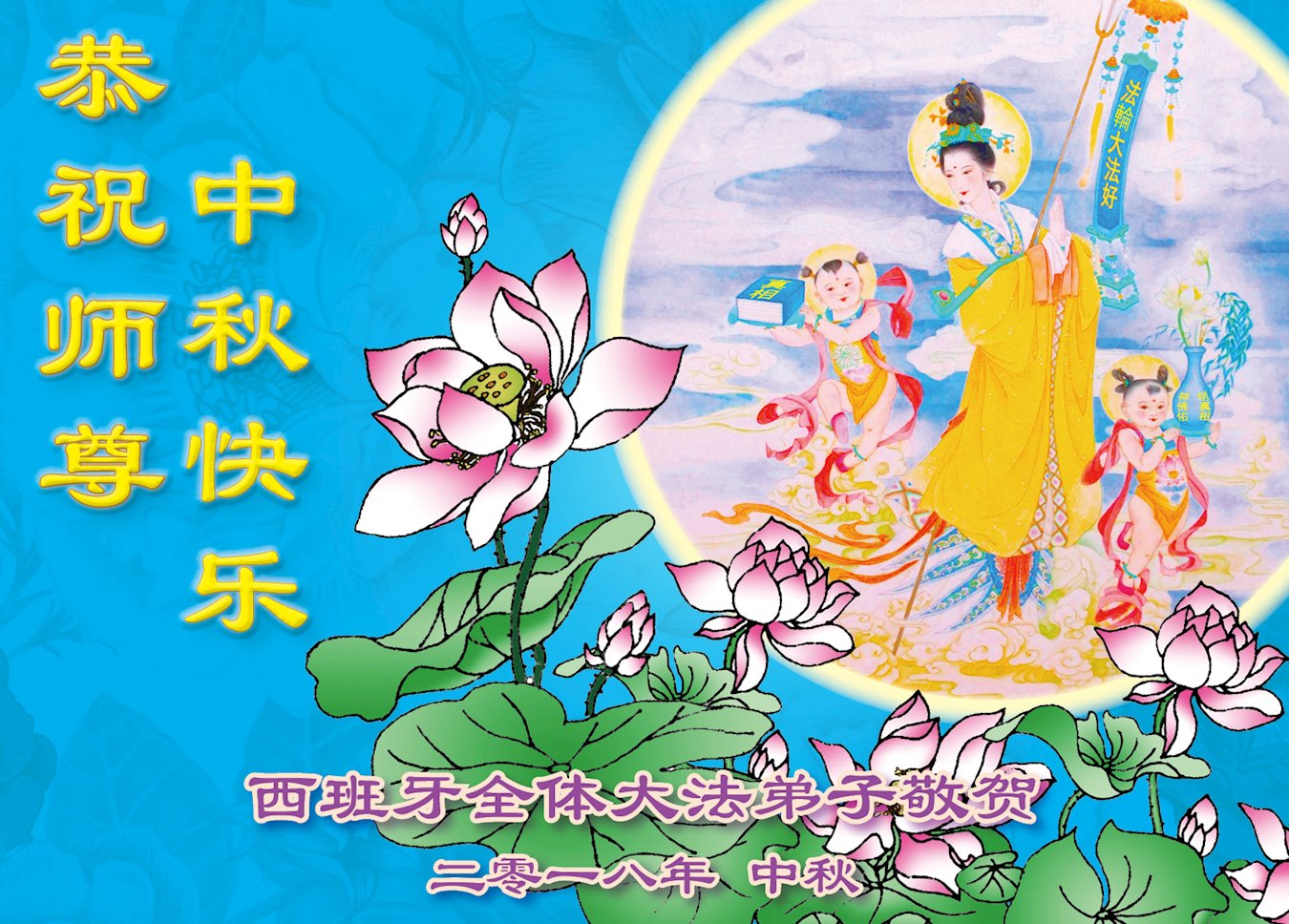 西班牙全体大法弟子恭祝慈悲伟大的师尊中秋快乐!