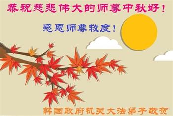 值此中秋佳节来临之际,弟子们感谢慈悲伟大的师父,感谢师父的慈悲加持、苦心呵护与慈悲点悟。师父您辛苦了,弟子们恭祝师父中秋快乐! 韩国政府机关大法弟子恭祝师尊中秋好!