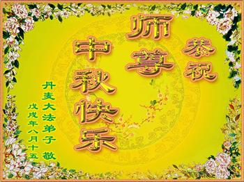 尊敬的师父,您好! 一年一度的中秋佳节来临了!法国大法弟子在这个敬谢神恩的传统节日里向师尊问好!恭祝慈悲伟大的师父中秋快乐!无尽感恩师父的慈悲苦度! 中秋感恩 清风皓月舞星辰 正气长空转法轮 漫漫乾坤天地固 洪穹旷宇念师恩 法国大法弟子合十敬祝 戊戌年中秋 丹麦全体大法弟子恭祝慈悲伟大的师父中秋节快乐!