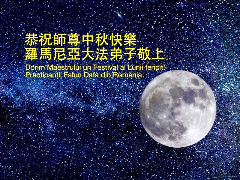 每逢中秋团圆日,遥望月圆人团圆, 家乡亲人可安好?心中思念可传到? 迫害阴霾照神州,毒害世人人变兽, 怜悯善良皆不在,摇头摆手眼不抬。 期盼阴霾早消逝,民众心中明真相, 明年十五月再圆,家人团圆聚神州。 中华大地面貌新,法轮大法佛光照, 人人心存真善忍,笑容满面人人道。 罗马尼亚大法弟子恭祝师尊中秋快乐!