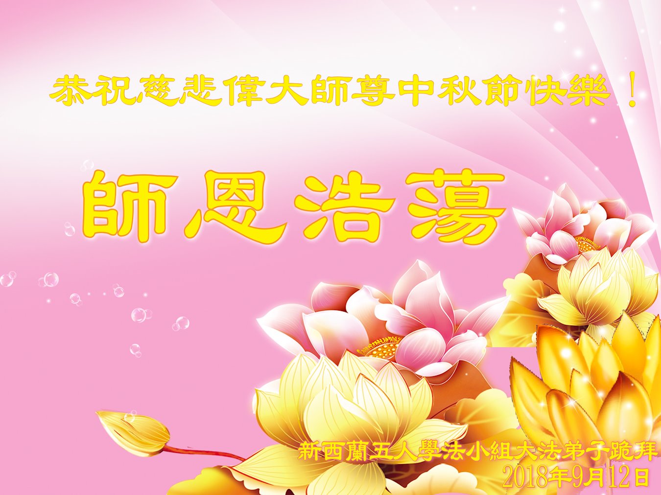 新西兰五人学法小组大法弟子恭祝慈悲伟大的师尊中秋节快乐!