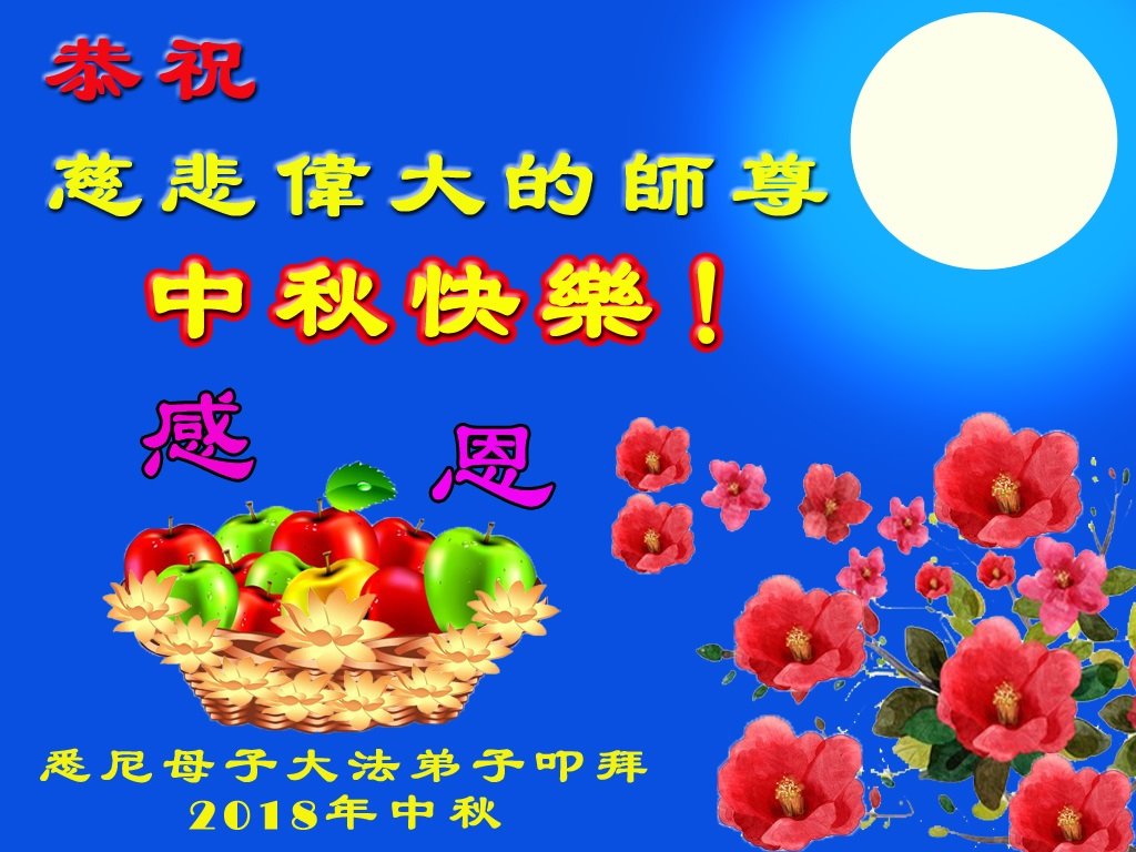 中秋佳节,弟子更加思念师尊!我们母女一定在提高心性中修好自己,做好三件事;一定走好走稳修炼之路,兑现史前誓约,跟师尊回家! 澳大利亚首都堪培拉全体大法弟子祝师父中秋节快乐!