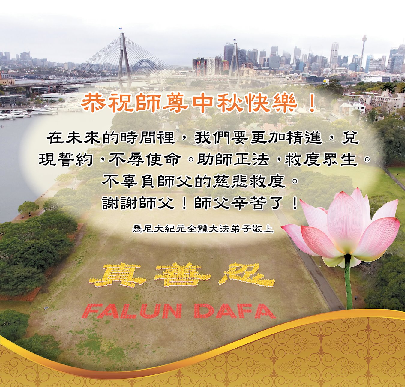 悉尼大.纪.元;全体大法弟子恭祝师尊中秋快乐!