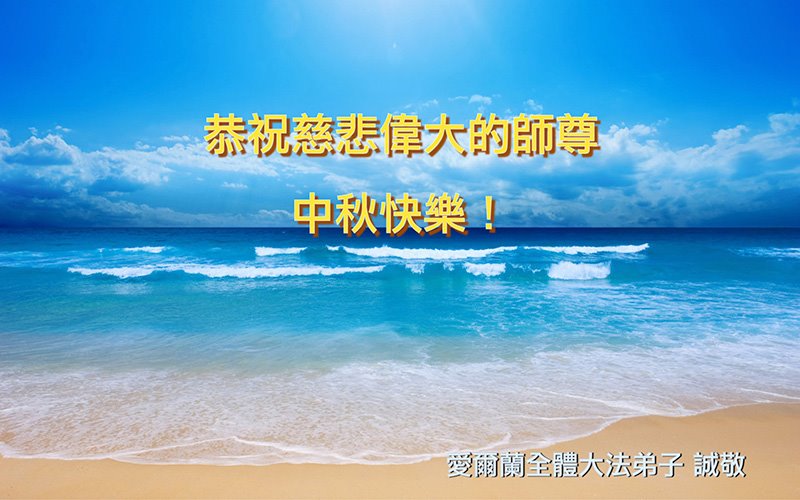弟子们一定学好法、修好自己,完成大法弟子的使命! 爱尔兰全体大法弟子恭祝慈悲伟大的师尊中秋快乐!