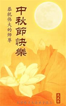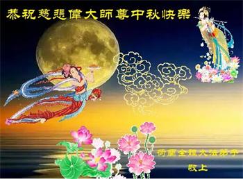 慈悲伟大的师尊好!中秋佳节到了,在这传统佳节来临之际,弟子们在此恭祝师尊节日快乐!惟愿师尊笑!感恩师父的慈悲救度!您把宇宙大法传给了众生,茫茫苦海中的我们从此找到了回家的路。在这正法的最后时刻,弟子们一定努力学好法,做好三件事,踏踏实实修好自己,多救人,兑现誓约,跟师父回家。再一次恭祝师尊中秋节快乐!弟子母女二人跪拜!合十 英国电话组大法弟子恭祝师尊中秋节快乐!
