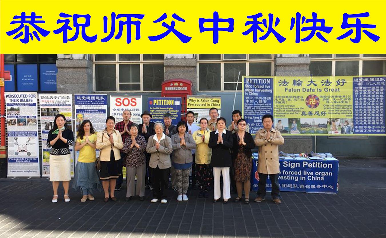伦敦唐人街大法弟子恭祝师父中秋快乐!