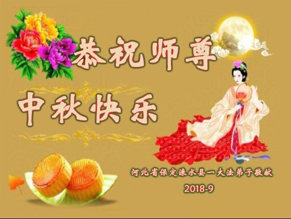 河北省保定高碑店市一老年大法弟子敬上 二零一八年九月 河北保定大法弟子恭祝师父中秋快乐!