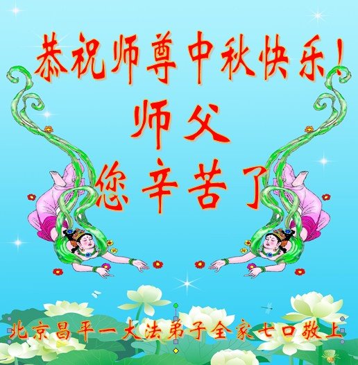 师尊中秋快乐!师尊辛苦了!弟子们牢记师尊嘱托,修好自己,多救众生。遥望师尊!叩拜师尊! 北京一线讲真相大法弟子恭祝师尊中秋快乐!