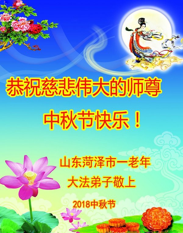 山东菏泽市一老年大法弟子恭祝慈悲伟大的师尊中秋节快乐!