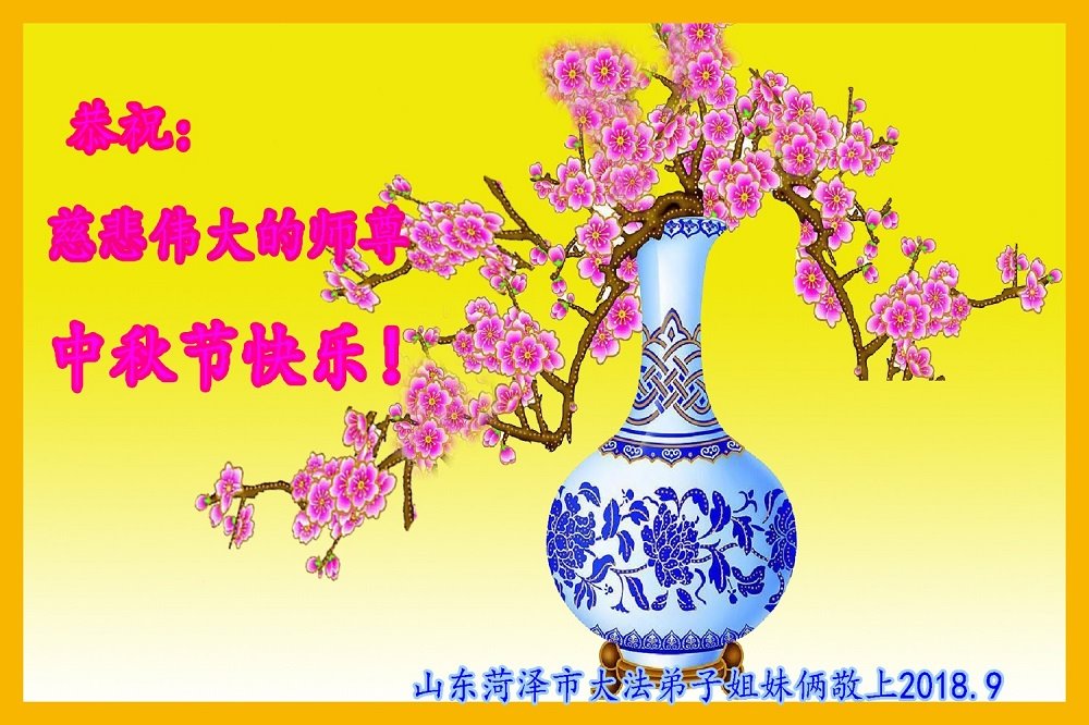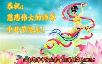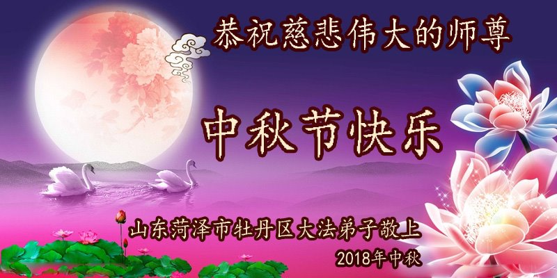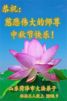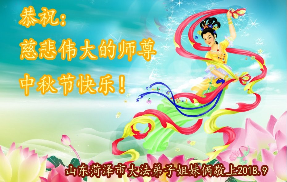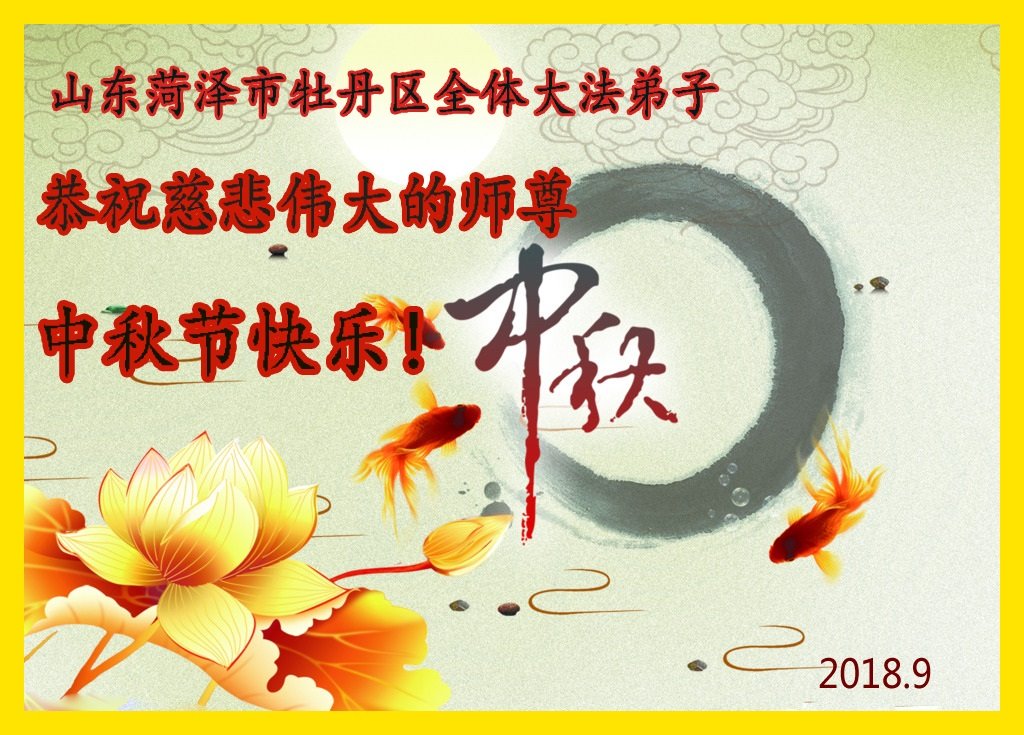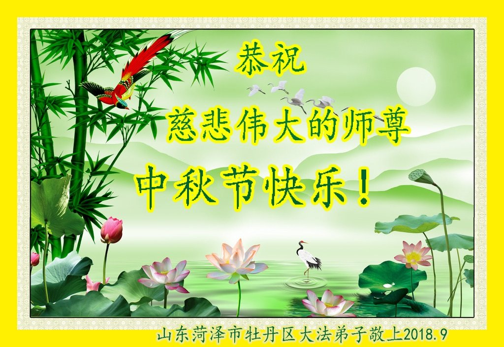 枣庄全体大法弟子恭祝师尊中秋快乐! 2018年9月16日 山东菏泽市全体大法弟子恭祝慈悲伟大的师尊中秋节快乐!