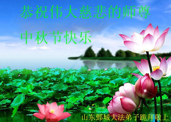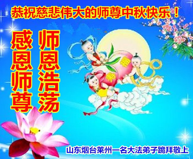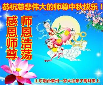 山东烟台莱州一家大法弟子恭祝慈悲伟大的师尊中秋快乐! 山东枣庄全体大法弟子恭祝师尊中秋快乐!