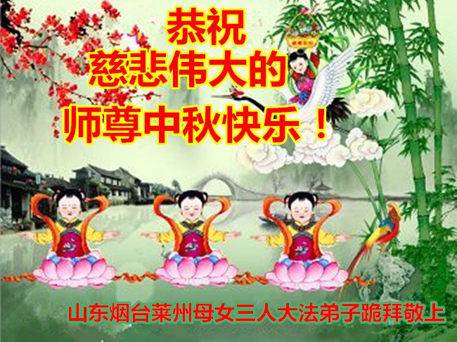 山东烟台莱州母女三人大法弟子恭祝慈悲伟大的师尊中秋快乐! 山东烟台莱州一名大法弟子恭祝慈悲伟大的师尊中秋快乐!