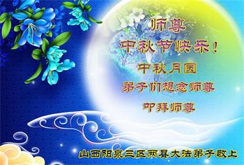 山西省阳泉市三区两县全体大法弟子们恭祝慈悲伟大的师尊中秋节快乐!
