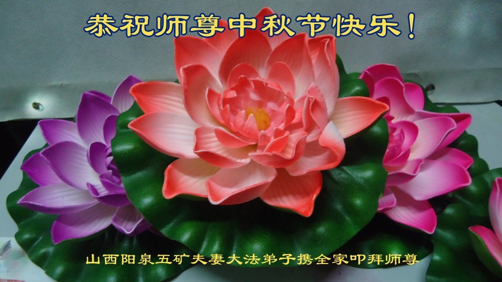 山西省阳泉市平定县一大法弟子和家人感恩师尊慈悲救度,恭祝伟大的师父中秋节快乐!谢谢恩师! 山西省阳泉市的全体大法弟子们恭祝慈悲伟大的师尊中秋节快乐!