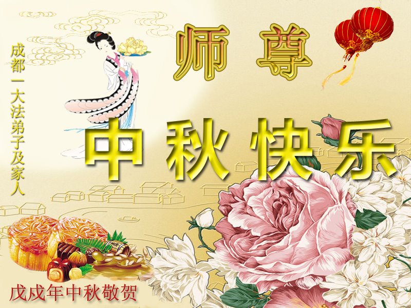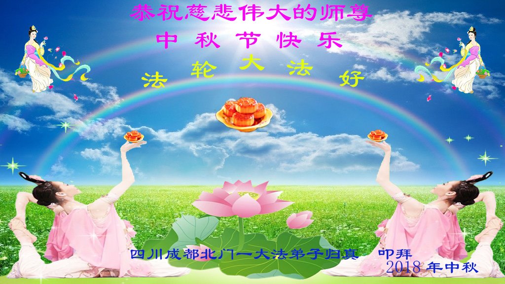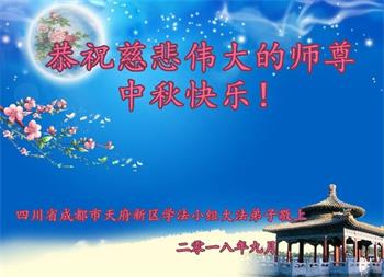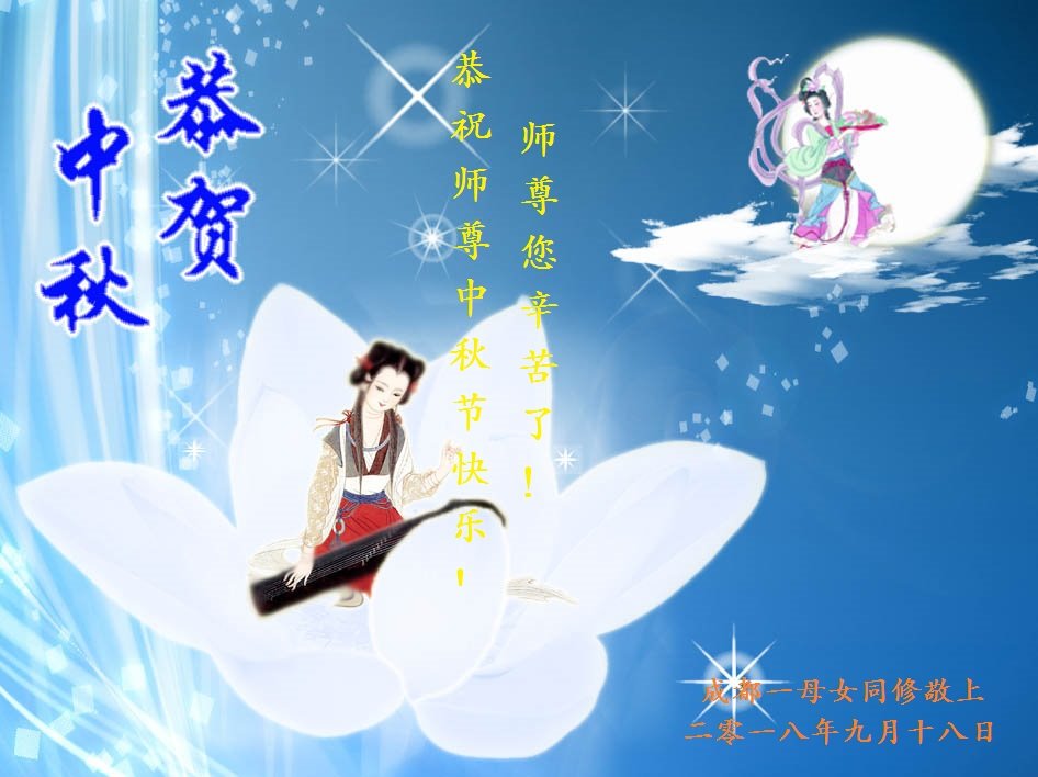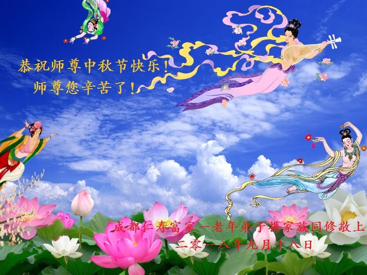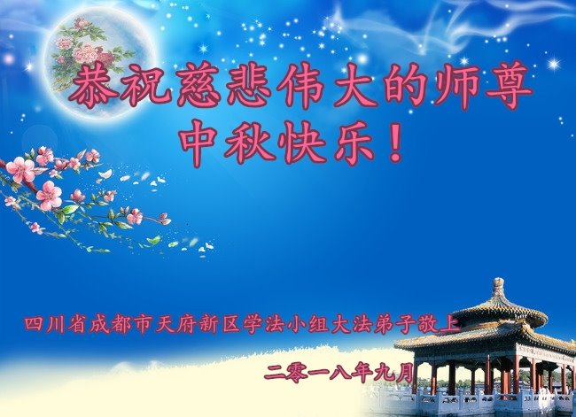 恭祝师尊中秋节快乐!师尊您辛苦了! 成都仁寿富家一老年弟子携家族同修敬上 二零一八年九月十八日 四川成都北门一大法弟子恭祝师尊中秋节快乐!