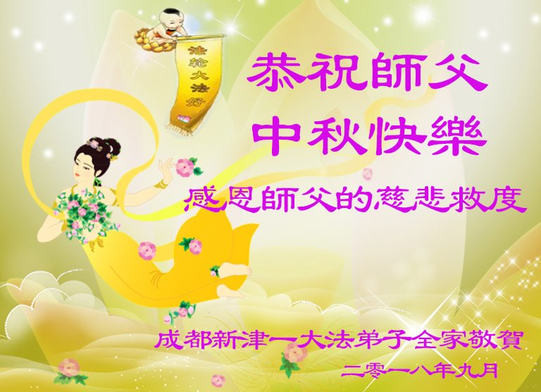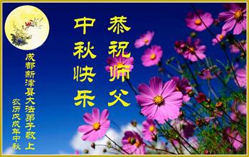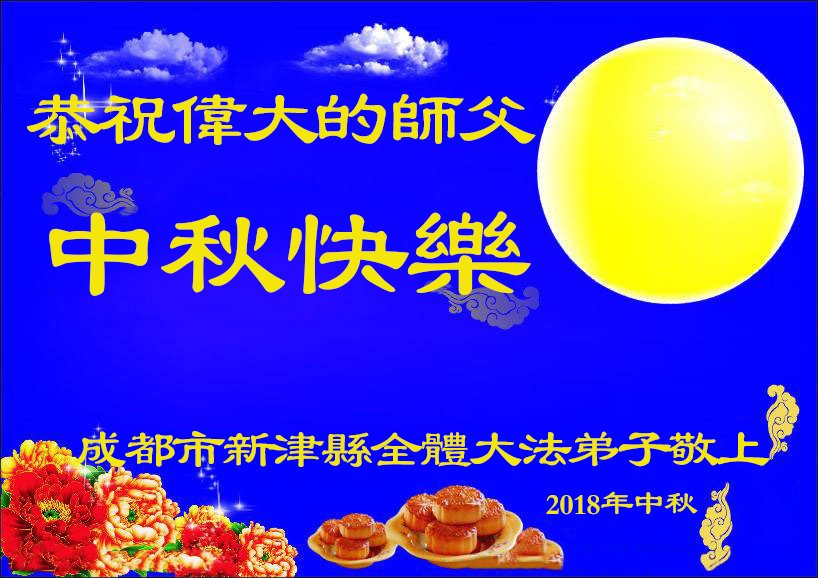 【明慧网二零一八年九月二十四日】 四川省成都市新津县大法弟子恭祝慈悲伟大的师父中秋节快乐!