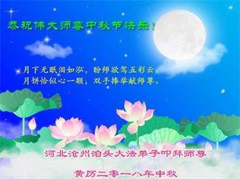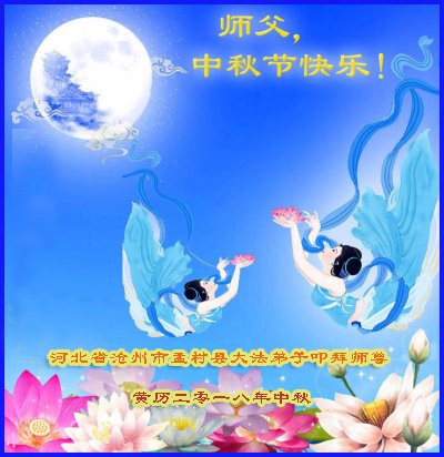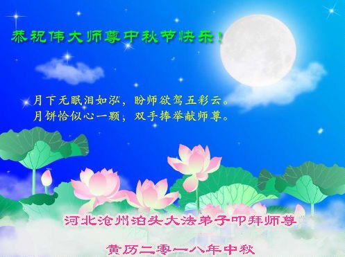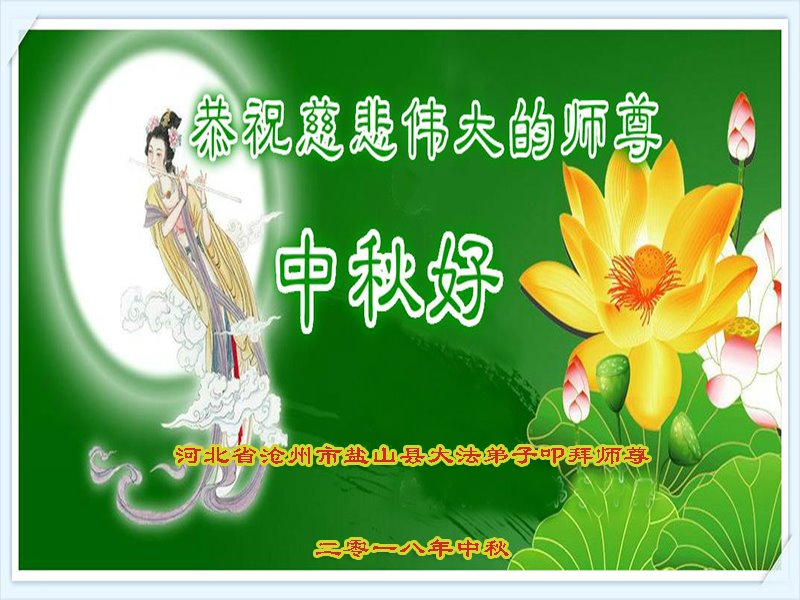 【明慧网二零一八年九月二十四日】 河北省沧州市沧县大法弟子恭祝慈悲伟大的师尊中秋快乐!