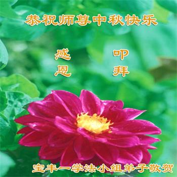 值此中秋佳节来临之际,谨代表宝丰大法弟子向慈悲伟大的师尊合十、叩拜!说声:师父您辛苦了,师父谢谢您!祝贺师尊中秋快乐! 河南平顶山宝丰一学法小组大法弟子恭祝师尊中秋快乐!