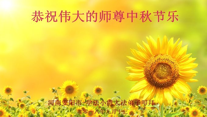 【明慧网二零一八年九月二十四日】 河南南阳桐柏全体大法弟子恭祝师尊中秋快乐!