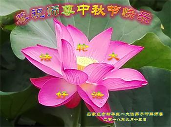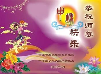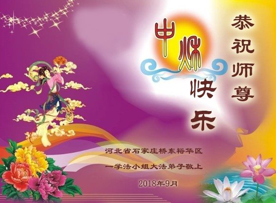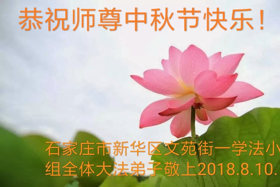 【明慧网二零一八年九月二十四日】 河北石家庄新华区文苑街一学法小组全体大法弟子恭祝师尊中秋节快乐!