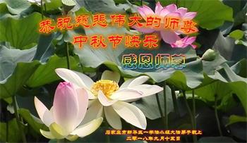 师尊给了我第二次生命,在师父的保护下走到今天,弟子叩拜师尊,谢谢师尊慈悲救度! 河北省石家庄市新华区俩人学法小组大法弟子恭祝师尊中秋节快乐!