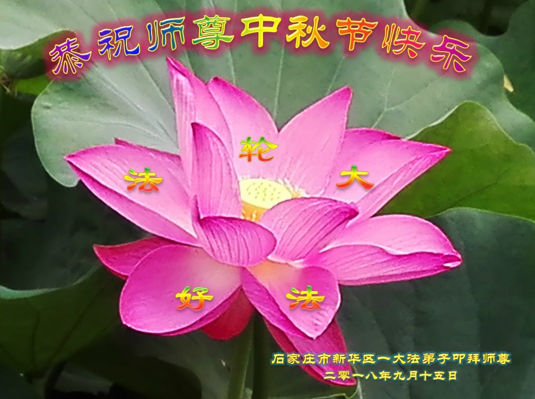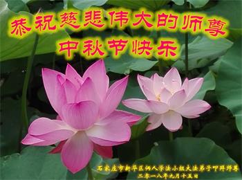 河北新乐大法弟子敬贺 二零一八年九月十五日 河北石家庄市大法弟子恭祝师尊中秋快乐!