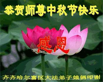 黑龙江省齐齐哈尔富区大法弟子娘俩恭祝师尊中秋节快乐!