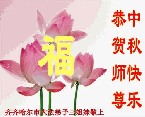 弟子们想念师父!师父您辛苦了! 黑龙江省齐齐哈尔地区大法弟子恭祝师父中秋节快乐!
