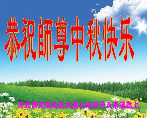 弟子想念您!弟子跪拜师恩! 河北保定市白沟镇及东马营乡全体大法弟子恭祝慈悲伟大的师尊中秋快乐!