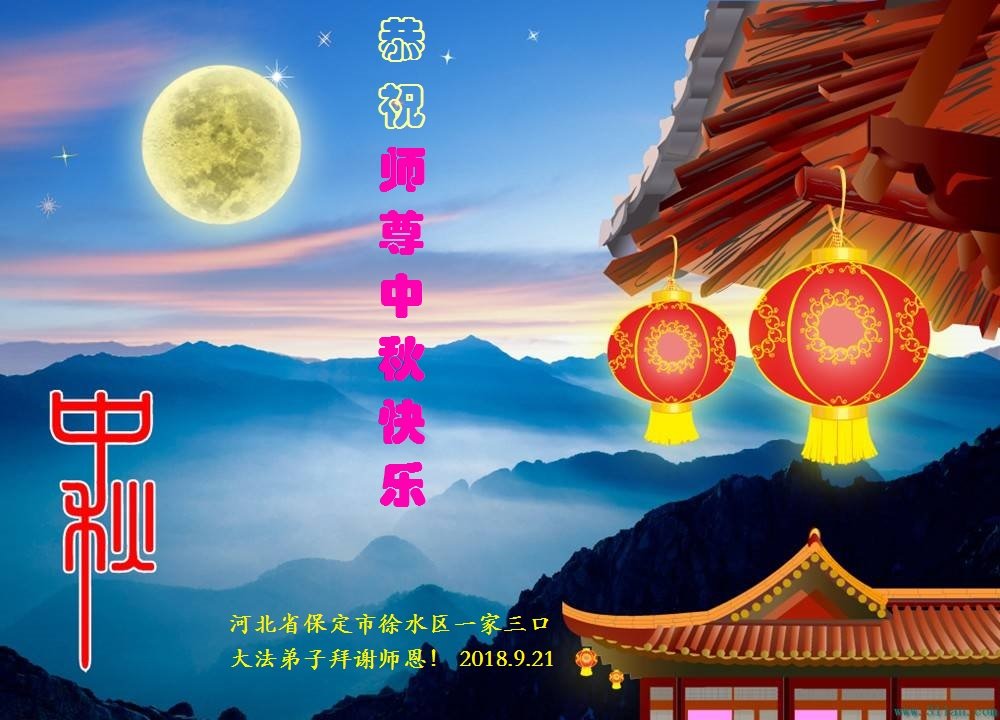 师父您辛苦了!弟子们想念您! 2018年9月21日 河北省保定市定兴县所有大法弟子恭祝师尊中秋快乐!