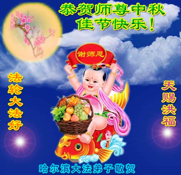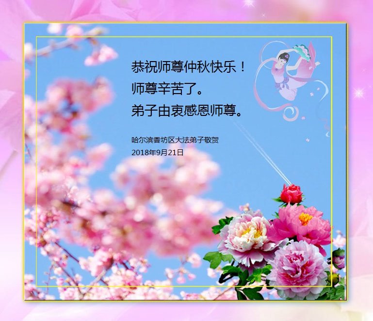 【明慧网二零一八年九月二十四日】 黑龙江哈尔滨市香坊区一大法弟子恭祝慈悲伟大的师尊中秋节快乐!