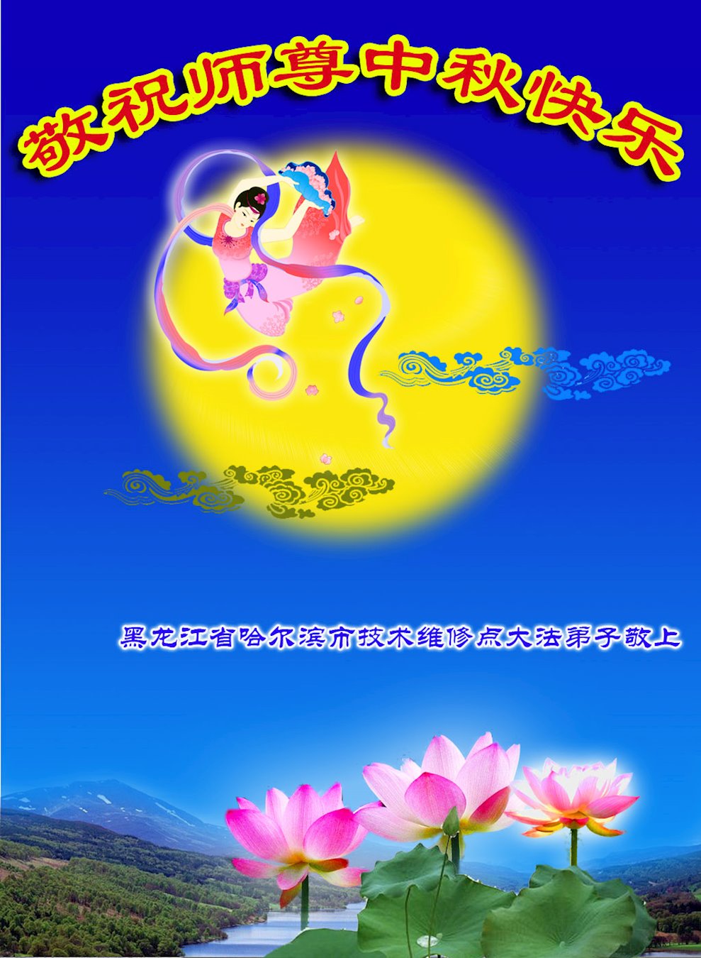 黑龙江省哈尔滨大法弟子恭祝师尊中秋佳节快乐! 黑龙江省哈尔滨大法弟子恭祝师尊中秋佳节快乐!