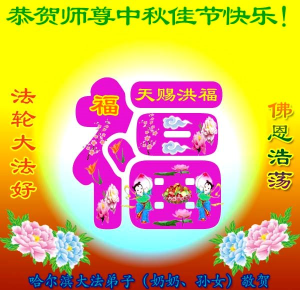 黑龙江哈尔滨大法弟子全家恭祝师尊中秋快乐!