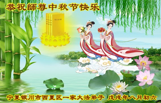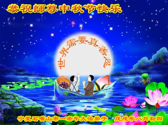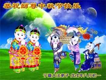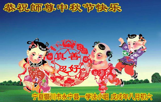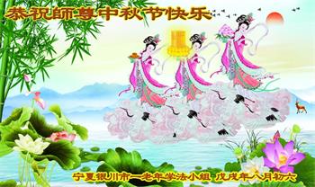 【明慧网二零一八年九月二十四日】 宁夏银川市兴庆区一学法小组恭祝慈悲伟大的师尊中秋节快乐!