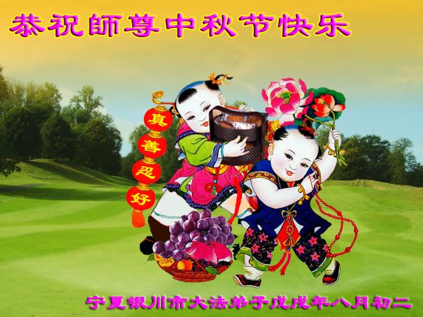 师父辛苦了!弟子对师父的感恩无法言表,弟子给师父三叩首!弟子唯有做好三件事,跟师父回家。 宁夏银川市一学法小组的大法弟子遥祝师父中秋节快乐!