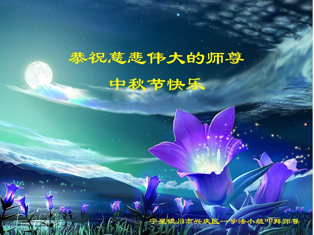 尊敬的师尊弟子无限感恩您,弟子非常想念师父。师父消去了我们的满身业力,把我们从苦难中解救出来,成为您的弟子,我们感到非常幸福和荣耀。弟子要听师父的话,以法为师,精進实修真善忍,信师信法,不断的用大法归正自己,返本归真,履行大法弟子的责任与使命,做好三件事,修成合格的大法弟子,随慈悲伟大的师尊回家。 宁夏银川市一老年学法小组大法弟子恭祝师尊中秋节快乐!