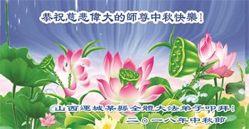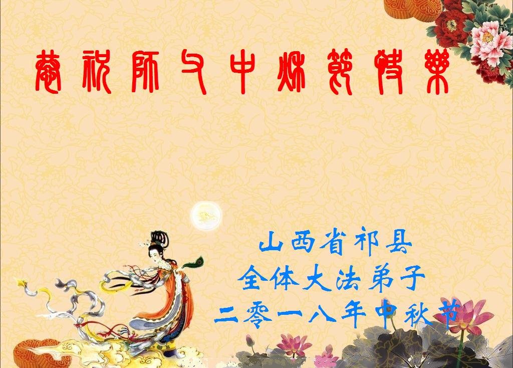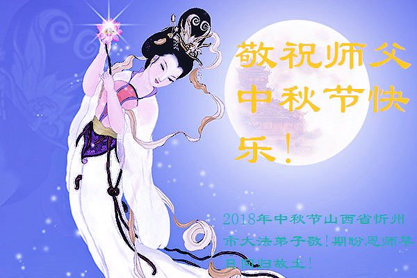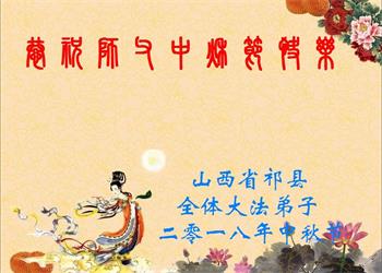 【明慧网二零一八年九月二十四日】 山西省阳泉市平定县一大法弟子恭祝慈悲伟大的师尊中秋节快乐!