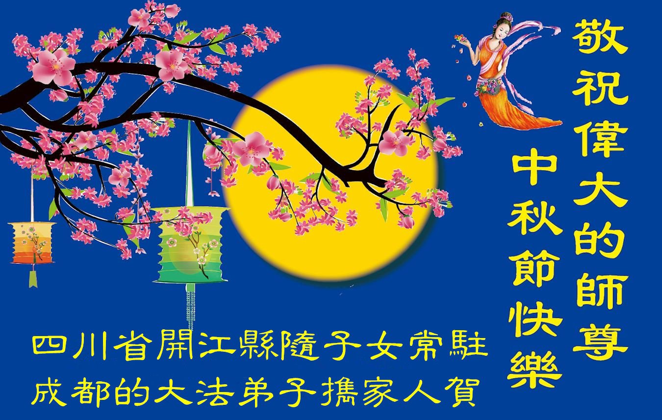 四川省成都市邛崃市大法弟子全家(家人未修炼法轮功)恭祝伟大的师父中秋节快乐!
