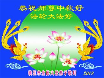 师父您辛苦了!感恩您的慈悲救度。 我们一定听您的话,相互配合整体提高,做好三件事,圆满随师还! 江苏省镇江市全体大法弟子恭祝师尊中秋好!